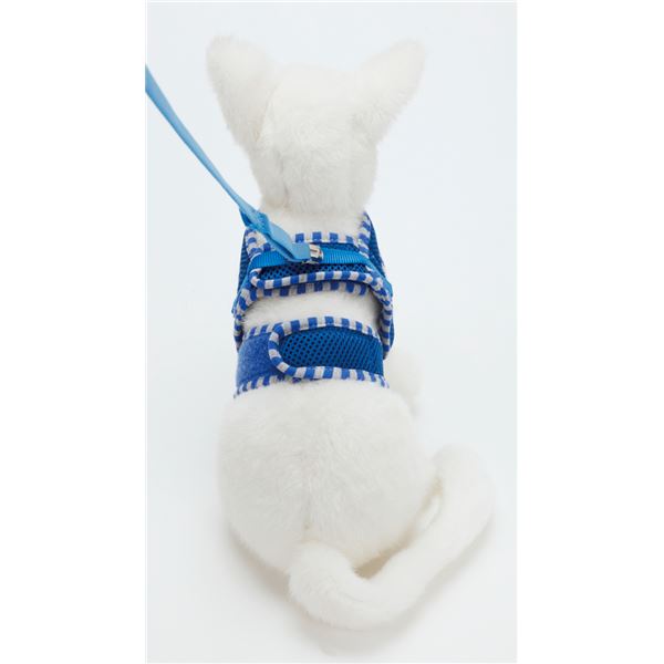 猫は体が柔らかいため、首・胴回りの2ヶ所をサイズ調節して体にフィットする形状。ダブルでフォールドするので安心度が高まります。庭やベランダのひなたぼっこ、病院等のお出かけにも最適。