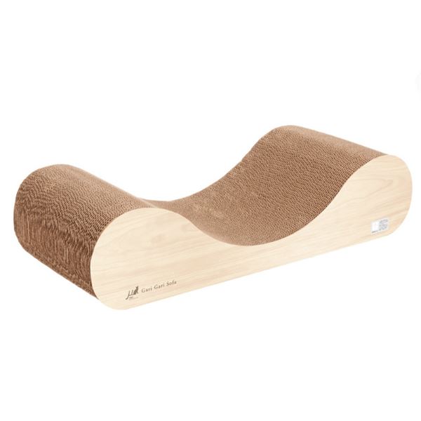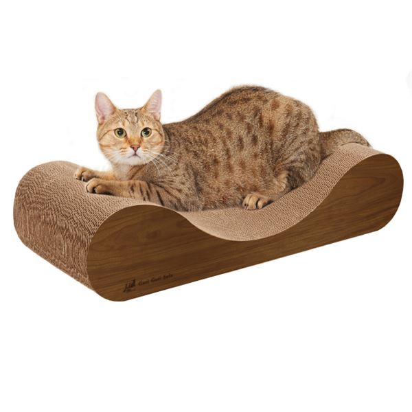 愛猫たちが最高にくつろげるように開発された、愛猫専用ソファ型クラウチングタイプの爪とぎです。中央のカーブが爪とぎはもちろん、ソファのようにくつろぐときも、とっても気持ちいいカタチです。愛猫がどこでも爪をとげるように、内側はすべて段ボールの爪とぎ素材を使用。さらに、愛猫が興味を示さないときに、爪とぎにふりかける「またたび」を付属しています。猫との暮らしを素敵に彩るインテリアスタイルで、両サイドの色は片面づつ違います。シックなダルブラウンと明るいミルベージュの木目調カラー。