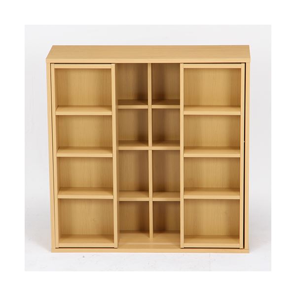 収納棚 本棚 16マス 幅89cm ナチュラル 上下連結可 可動棚付き 組立品 ダブルスライドラック リビング ダイニング【代引不可】