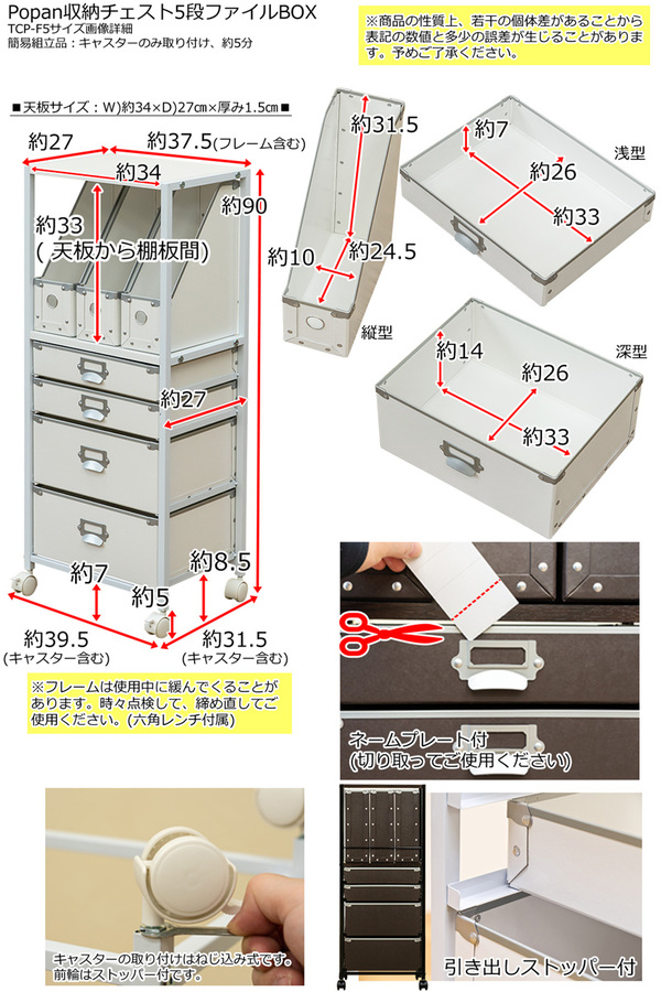 収納チェスト 収納ワゴン 5段 ホワイト キャスター付き スチールフレーム Popan ファイルBOX リビング オフィス 在宅ワーク【代引不可】