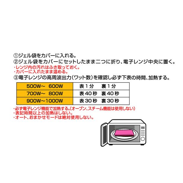 ●保温起毛カバー付きで、ジェル袋をカバーにいれたまま電子レンジで加熱できます。