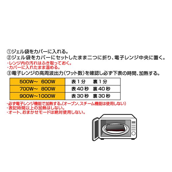 ●保温起毛カバー付きで、ジェル袋をカバーにいれたまま電子レンジで加熱できます。