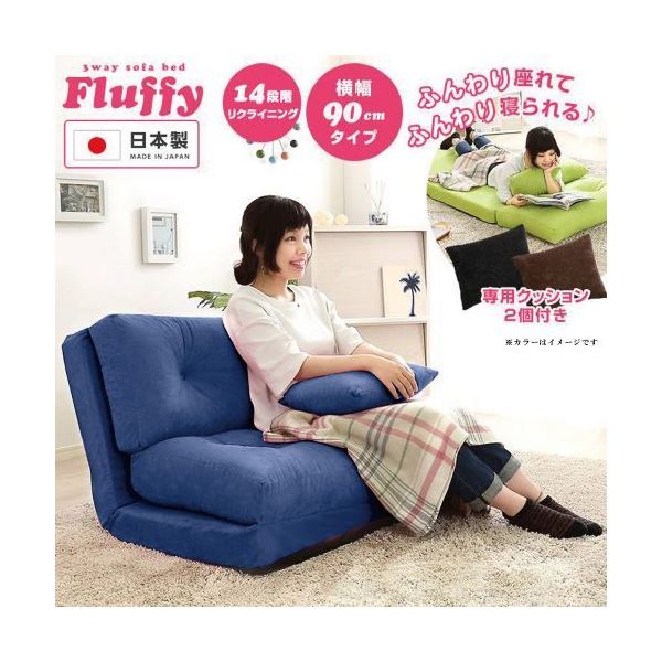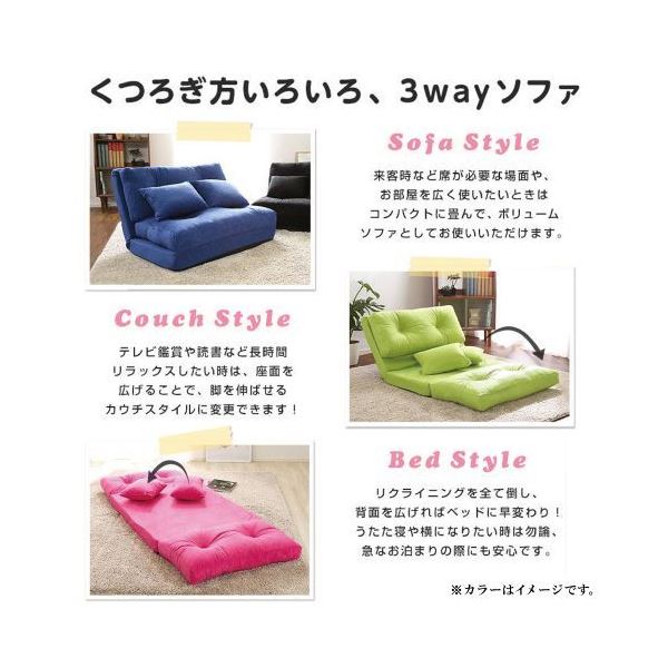 背もたれ14段リクライニング。3通りのスタイルに切替が可能な多機能ソファです。クッション2個付き。