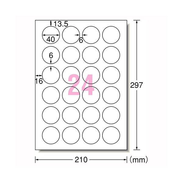 エーワン ラベルシール プリンタ兼用 再剥離 24面 丸型 100入