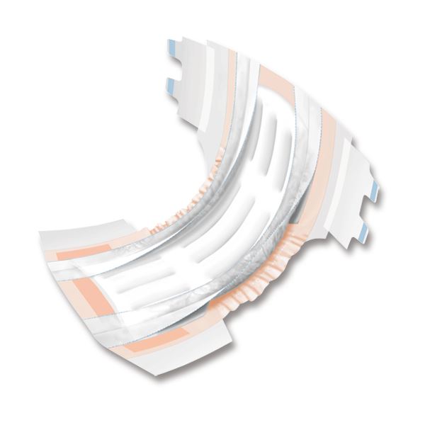 ●超立体3重ギャザーが股ぐりにフィットして横モレ防止。尿とりパッドもしっかり固定するテープ止めタイプのMサイズ4パックセット。