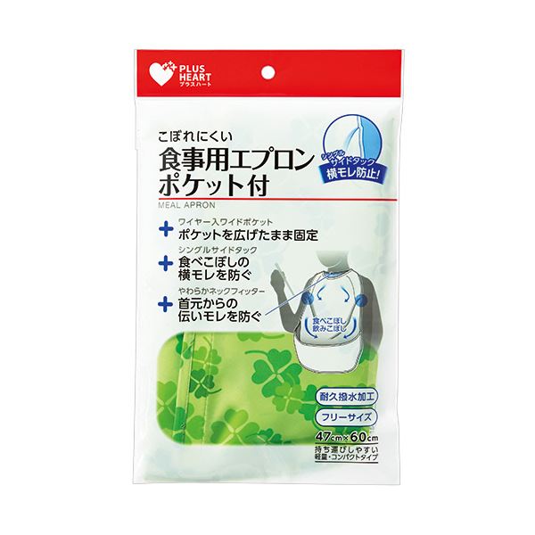 (まとめ)オオサキメディカル プラスハートこぼれにくい食事用エプロン ポケット付サイドタック グリーン 73752 1枚【×5セット】