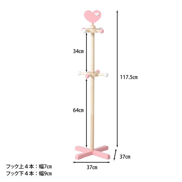 キッズ ポールハンガー コートハンガー 幅37cm ハート 木製 子供部屋 リビング 玄関 ベッドルーム 寝室【代引不可】