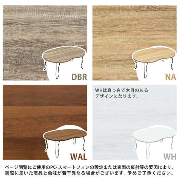 ダークブラウン(DBR)、ナチュラル(NA)、ウォールナット(WAL)、ホワイト(WH)の4色展開です。