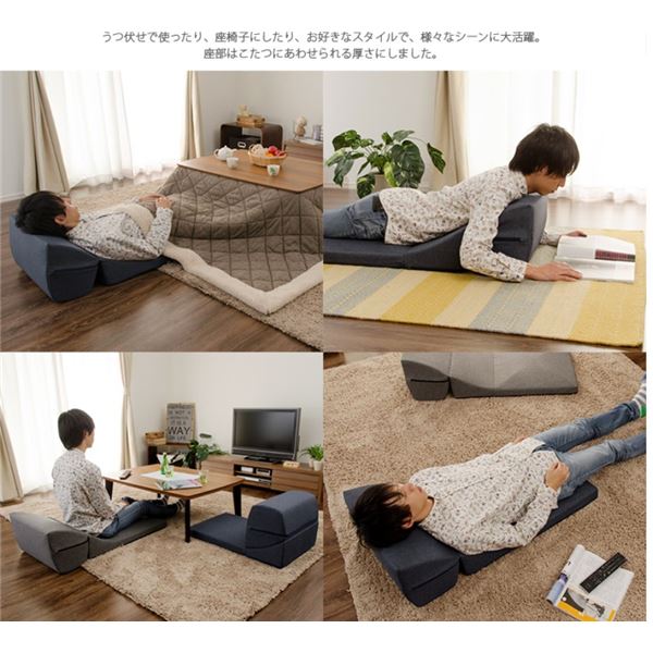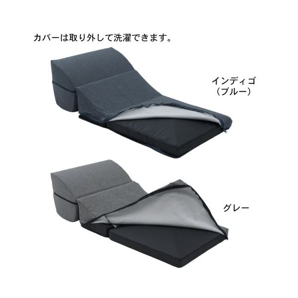 折りたたみ ごろ寝クッション 【グレー】 幅50cm 日本製 洗えるカバー ウレタンフォーム ポリエステル 〔リビング〕【代引不可】