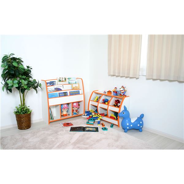 *マガジンラックは、本の表紙が見えるように収納すので自発的に本を読むようになります。また表紙を見せてゆとりがある状態で収納できるので、お子様にも本が取り出しやすいです。下段は図鑑等の大型本もおけるのでいろんな本に興味を持ち始めたお子様におすすめです。