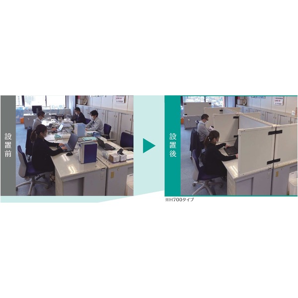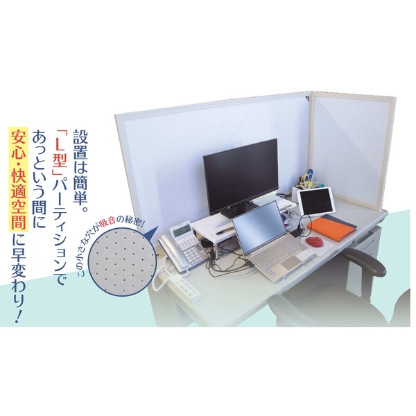 ●並んだデスクにはL字タイプとコの字タイプを連結して経済的に