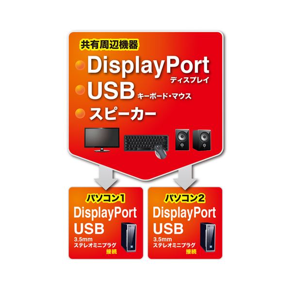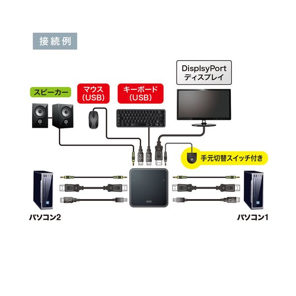 サンワサプライ DisplayPort対応手元スイッチ付きパソコン自動切替器(2:1)