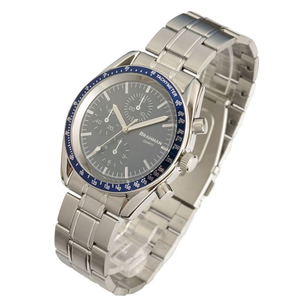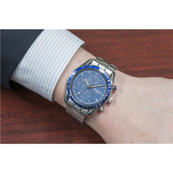 [ブラフマン] 腕時計 日本製ムーブメント フェイククロノグラフ 3針 BR002-03 【文字盤:ブルー】