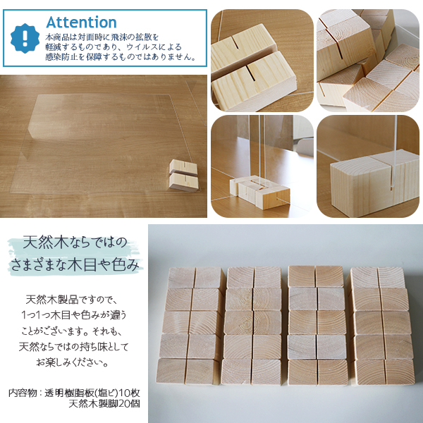 衝立 パーティション 10台 セット 日本製 透明 樹脂板 仕切り 板 ウイルス 対策 予防 感染 飛沫 防止 ガード パネル L サイズ 68 × 50 cm レギュラー スタンド 木製 脚【代引不可】