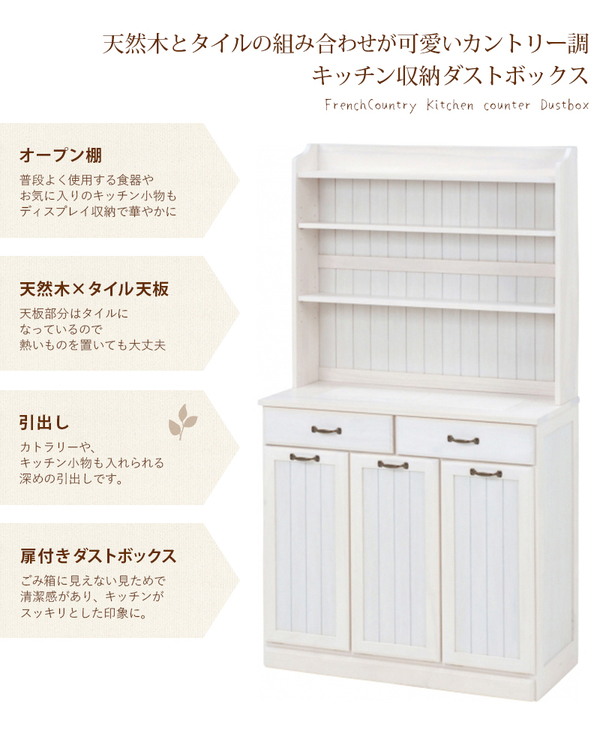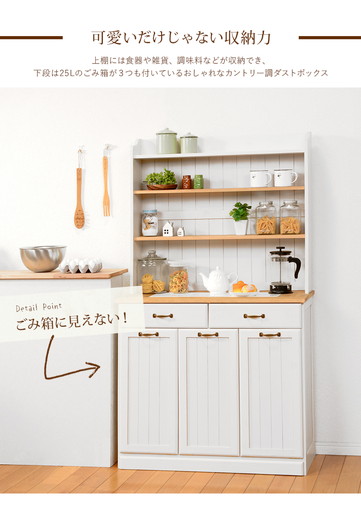 棚や引出しには収納も出来るゴミ箱に見えないデザイン、3分別ダストボックス。25リットルタイプ。