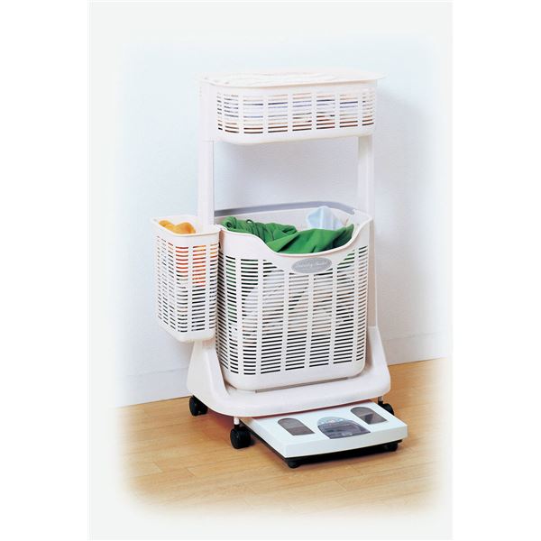 たっぷり収納できる洗濯物入れ。これ1つでいろいろ使える、収容力のある2段タイプのランドリーバスケット。上段には着替えやタオル、普段よく使う小物などの収納に。たっぷり入る下段には洗濯物を放り込めます。下段のバスケットはワゴンから降ろしてそのまま洗濯機へ持って行けるので便利。持ち運びに便利なハンドル付きの下段バスケットです