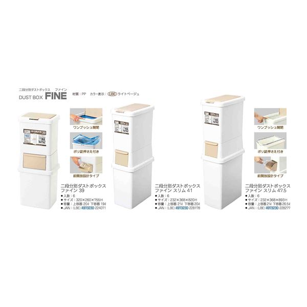 二段分別 ダストボックス/ゴミ箱 【ファイン 39L】 日本製 ワンプッシュ 簡単組立 組立品 『サンコープラスチック』