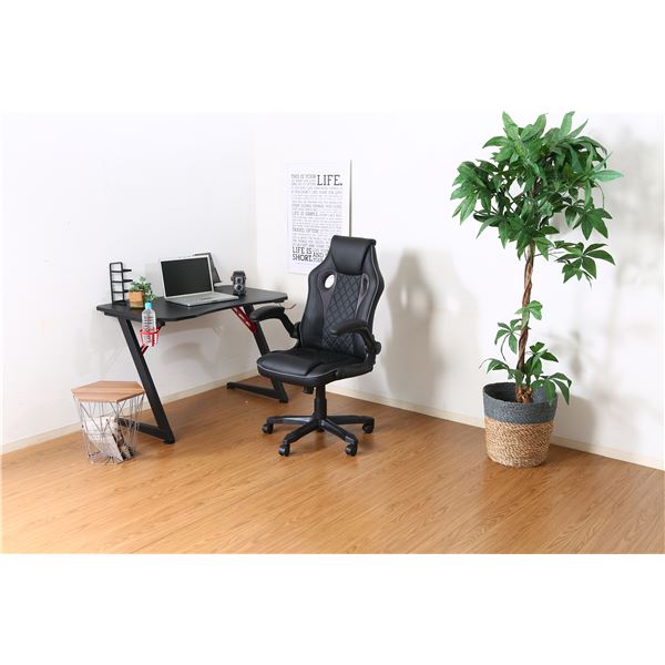 ゲーミングチェア レーシングチェア 約幅65.5cm ブラック×グレー スチール 肘付き リビング ダイニング 在宅ワーク テレワーク【代引不可】