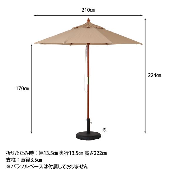 パラソル 約幅210cmタイプ アイボリー 木製 組立品 パラソルベース別売 ガーデン ベランダ テラス バルコニー ウッドデッキ【代引不可】