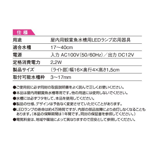 【その他詳細】【用途】屋内用観賞魚水槽用LEDランプ応用器具