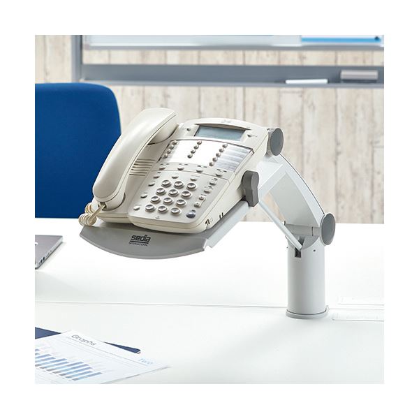 ●360°回転、手前に引き寄せることも自由自在。高さ調節のできるフレックスタイプのテレフォンアーム。