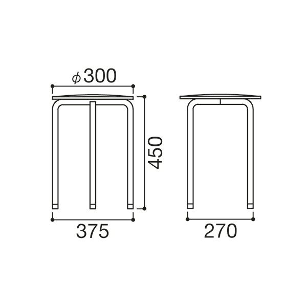 ●5脚までスタッキングできる丸型スツール。座面はブラウンです。