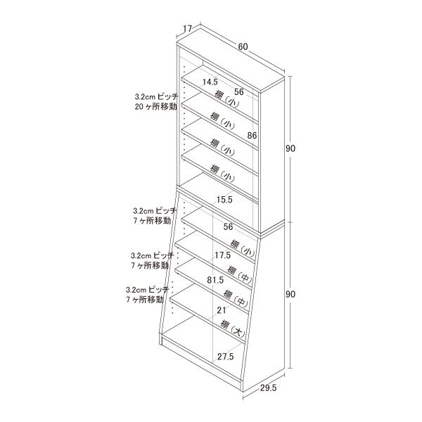 ■詳細:可動棚=小5枚・中2枚・大1枚 上段内寸=約W56.5×D15×H87cm 下段内寸=約W56.5×D27.5(15)×H81cm