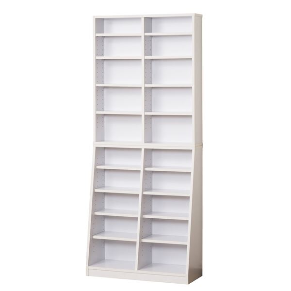 奥行が浅い上段はCDやDVD、文庫本などの収納に、奥行の深い下段は百科事典などを収納できます。棚板はすべて可動、収納物の高さに合わせて設置できるので、ムダがありません。背面化粧仕上げ。下部は斜めにカットされているので安定感があり、また上段・下段が独立しているので、別々にお使いいただくこともできます。