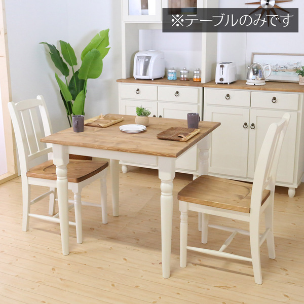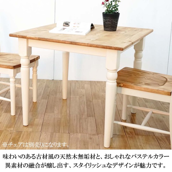 天板はパイン無垢材にオイル塗装で仕上げたアンティーク風のデザインで、まるでフランスダイニングのような気分を味わえます。
