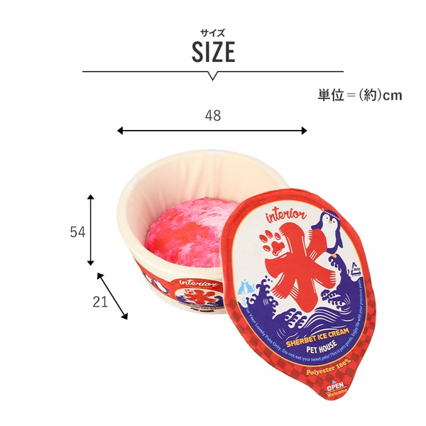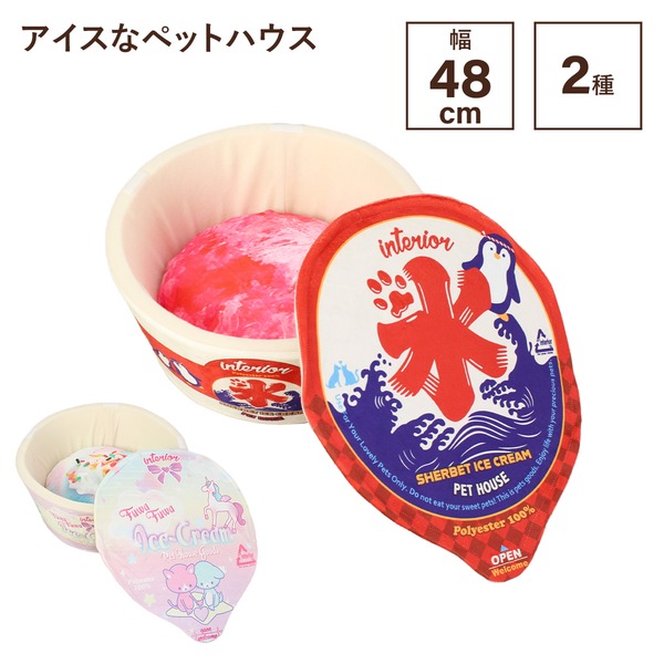 ペットハウス ペットベッド 約幅48cm アイスな かき氷 マジックテープ式ふた付き ウレタン お手入れ簡単 犬 猫