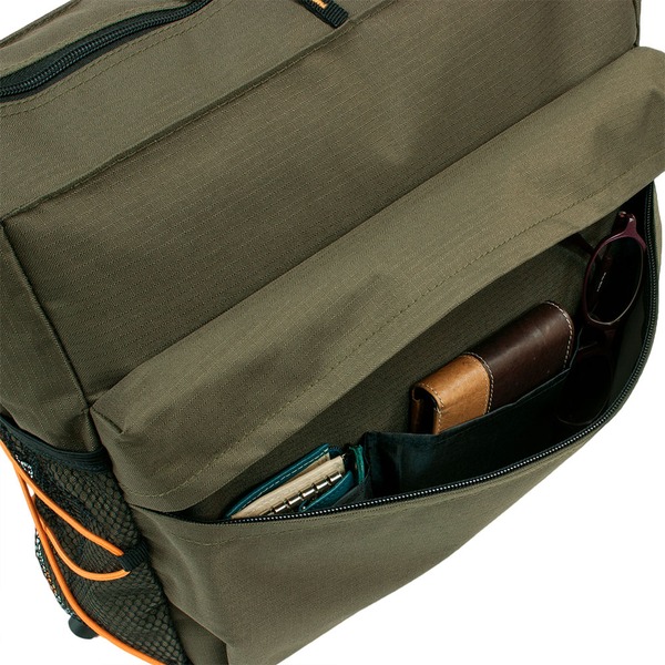 前面にファスナーマチ付ポケット1ヶ所、背面にオープンポケット1ヶ所、内部にポケット1ヶ所ありますので、小物の仕分けに便利です。