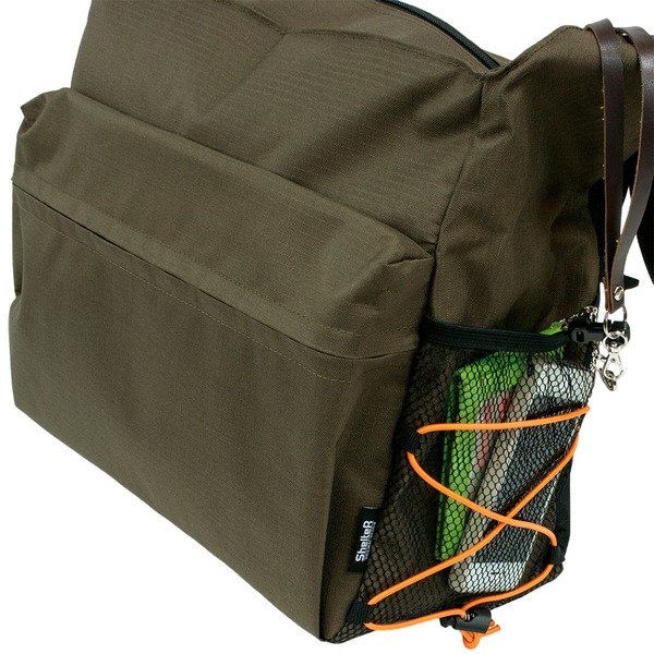 サイドにオープンメッシュポケットが付いていますので、ペットボトル等を入れるのに便利でゴム付ですので落下を防ぎます。