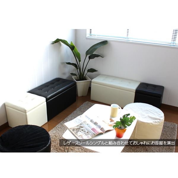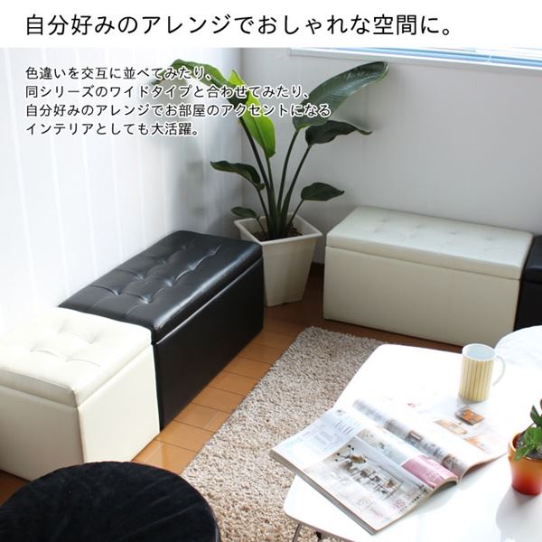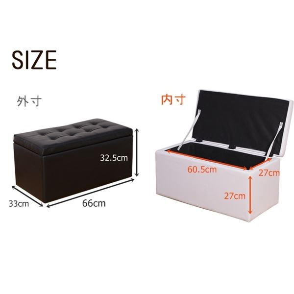 スツール オットマン 約幅66cm 2人掛け ブラック 収納付き 撥水 合皮 合成皮革 木製 完成品 リビング ダイニング