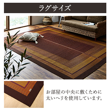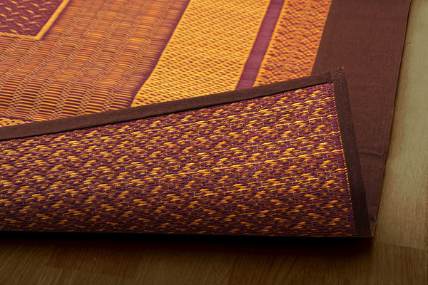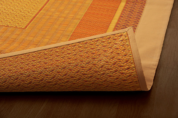 現代のライフスタイルに合う、洗練されたモダンなデザインのい草カーペットです。国産(九州産)のい草を使用しています。一本一本が太く、表皮が厚く繊維がキメ細かいので弾力性があり、耐久性に優れています。い草には空気の自然浄化作用、湿度の調節作用などがあります。また汚れにくく、使用するうちに黄金色に変化し味が出ます。い草に青森ヒバ加工を施しています。(抗菌、防臭効果)