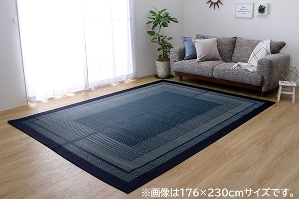 モダン い草 ラグマット/絨毯 【ネイビー 約95×150cm】 日本製 抗菌 防臭 調湿 空気清浄効果 〔リビング〕【代引不可】