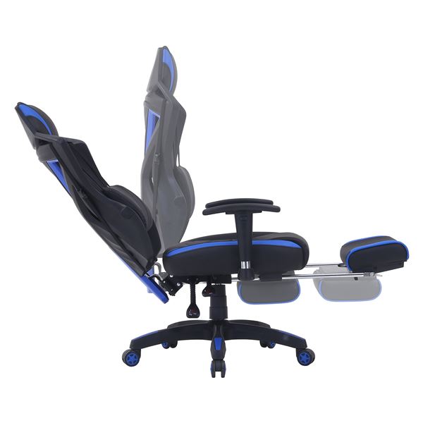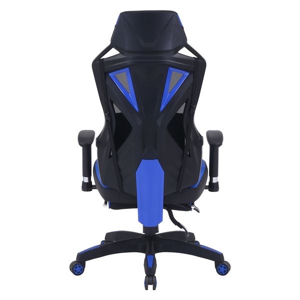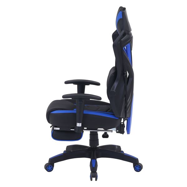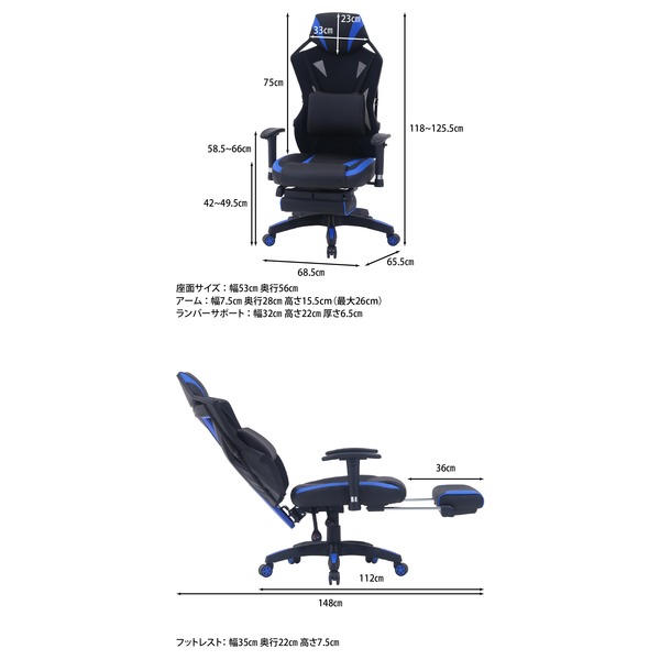 メッシュ ゲーミングチェア レーシングチェア 約幅68.5cm ブルー フットレスト付 スチール 肘付き リビング 在宅ワーク 組立品【代引不可】