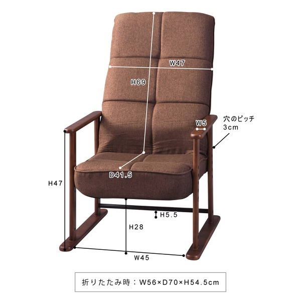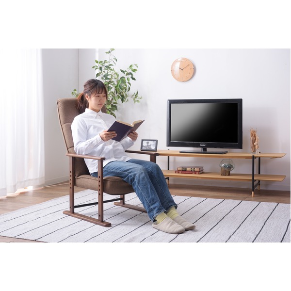 パーソナルチェア 高座椅子 幅56cm M ブラウン 木製 スチール リクライニング 肘付き 高さ調節 折りたたみ 組立品 リビング