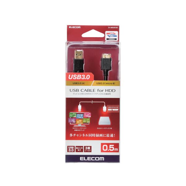 (まとめ) エレコム USB3.0ケーブル/A-microBタイプ/AV売場用/0.5m/ブラック DH-AMB3N05BK 【×2セット】