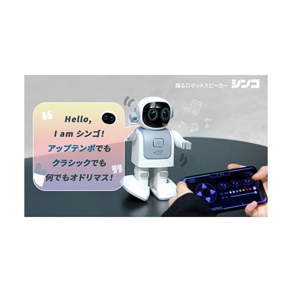 「踊るロボットスピーカーシンゴ」は音楽を自己分析し、プログラミングされた130種類以上の多様なコンビネーションアクションを曲調に合わせてダンスを披露するBluetoothスピーカーです。