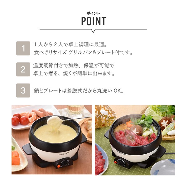 鍋とプレートは着脱式のため丸洗いができて便利。