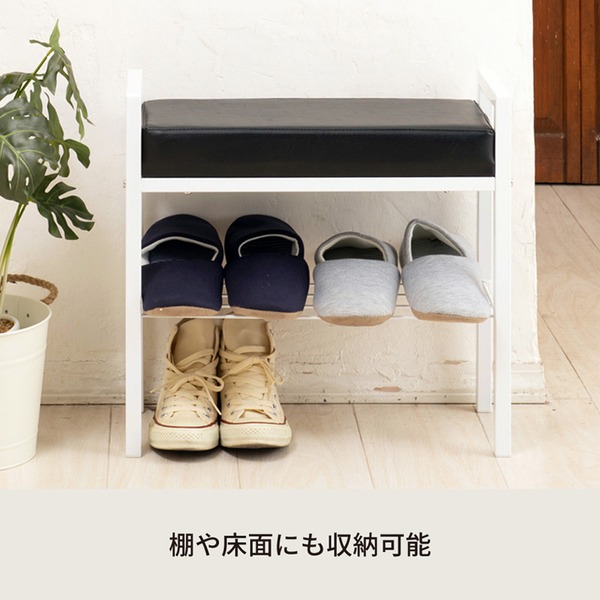 【3個セット】クッション付エントランスベンチ(ホワイト/白) 収納棚付 玄関 収納 モダン チェア 介護 シューズラック イス 椅子 下駄箱 補助椅子 業務用 NK-7420