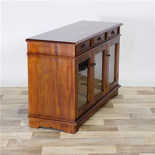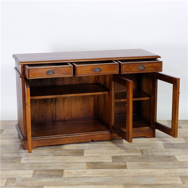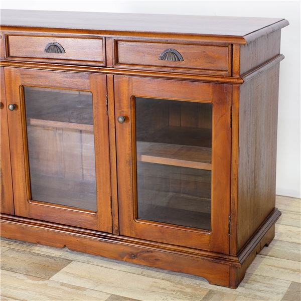 木製 ワイドキャビネット/サイドボード 【幅120cm×奥行43cm×高さ73cm】 マホガニー材 引き出し付 真鍮製取っ手 【完成品】【代引不可】