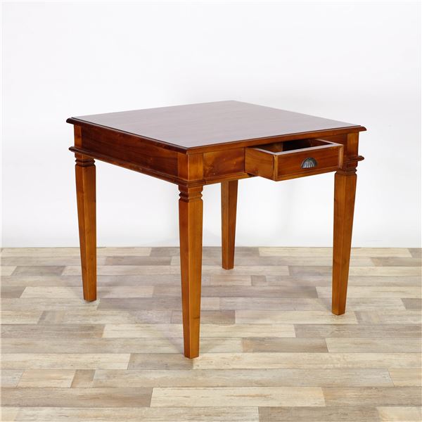 木製 ダイニングテーブル/食卓机 【S】 幅80cm×奥行80cm×高さ73cm マホガニー材 引き出し付き 真鍮製取っ手 組立品【代引不可】