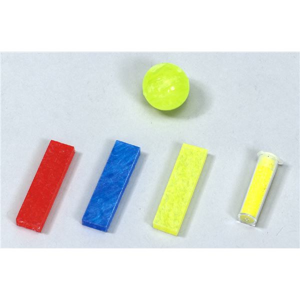 スーパーボールの芯×1、スーパーボールの素(赤)×1、スーパーボールの素(青)×1、スーパーボールの素(黄)×1、キラキラ粉×1