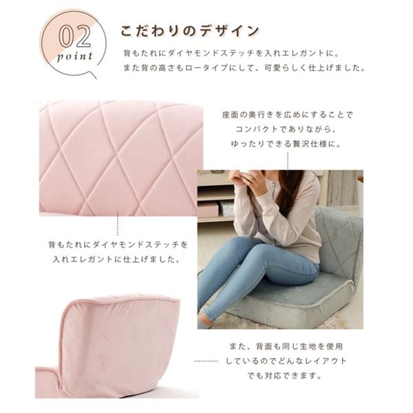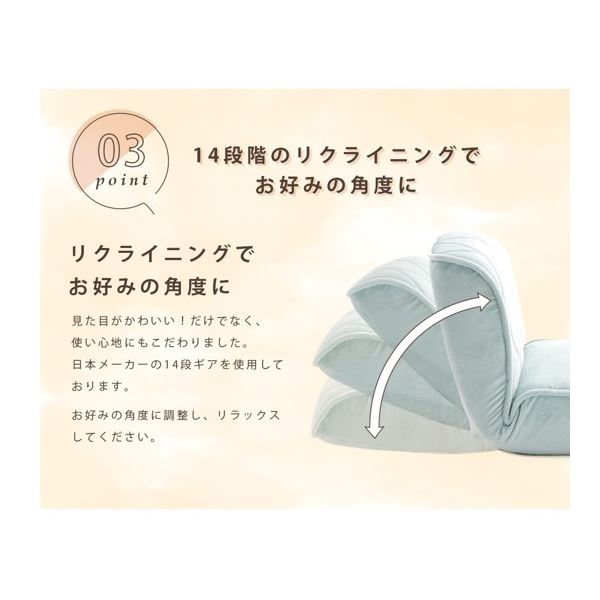 背もたれは14段階リクライニング。背面の表裏にはキルト仕様のお洒落な仕様。座面にはポケットコイルスプリングが入っているのでクッション性抜群!