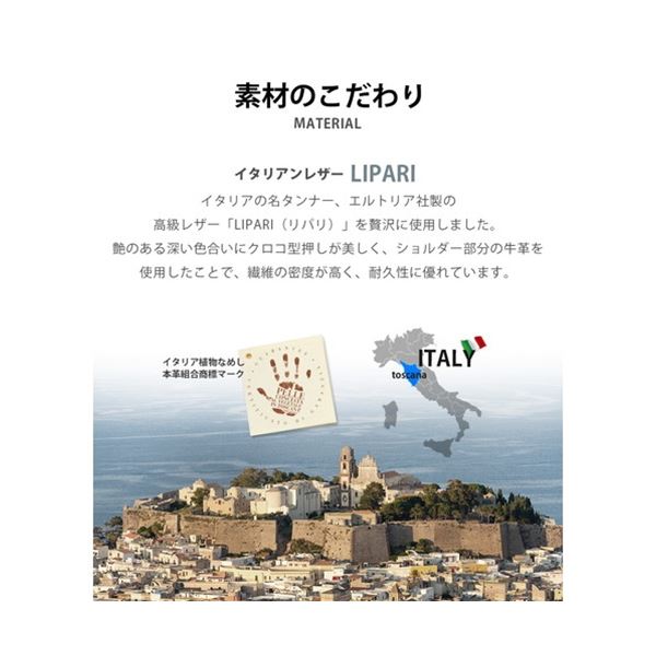 イタリアの名タンナー、エルトリア社製の高級レザー「LIPARI(リパリ)」を贅沢に使用しました。