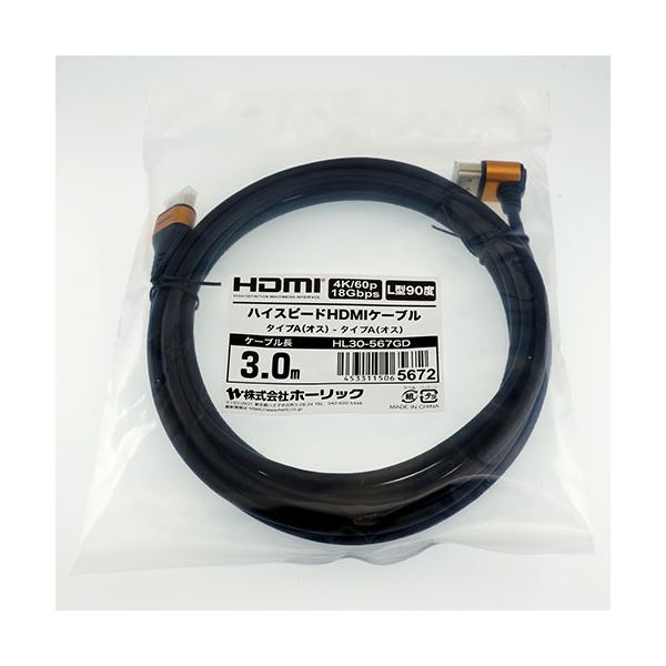 (まとめ) ホーリック HDMIケーブル L型90度 3m ゴールド HL30-567GD 【×2セット】