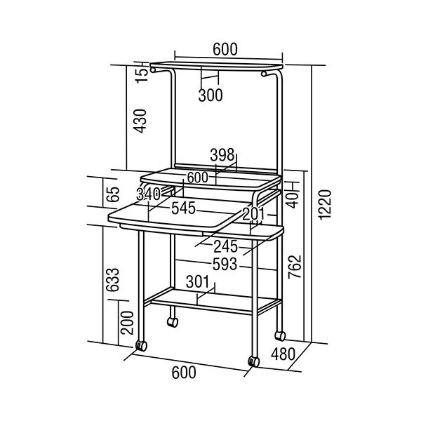材質:天板:合成樹脂化粧パーティクルボード、フレーム:スチール、キャスター:ポリプロピレン(ストッパー付2個)