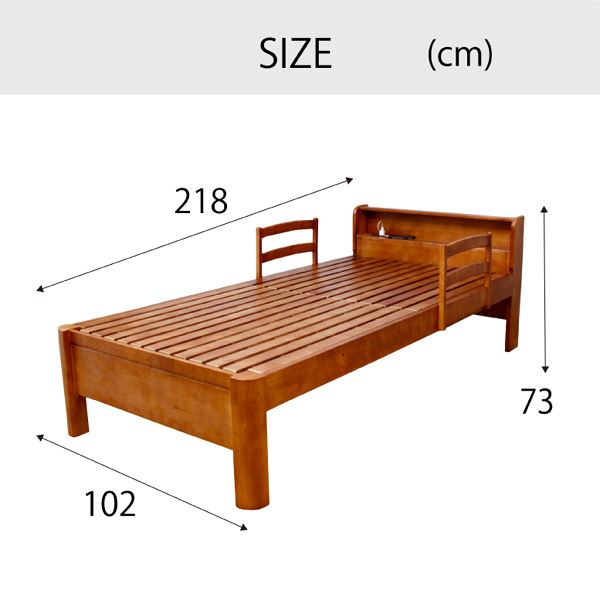 ベッド 寝具 幅102cm シングル ブラウン 木製 耐荷重700kg 手すり 宮付き 高さ調整3段 2口コンセント 耐荷重ベッド ベッドルーム【代引不可】
