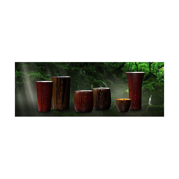 木製のような温もりを感じさせる「和然檀」シリーズ。職人が手作業で描き出した模様は、木の年輪のごとく、ひとつとして同じものはありません。漆の色合いと細やかな塗りの技法によって、自然の中で年月を重ねた古木の風合いを再現しています。